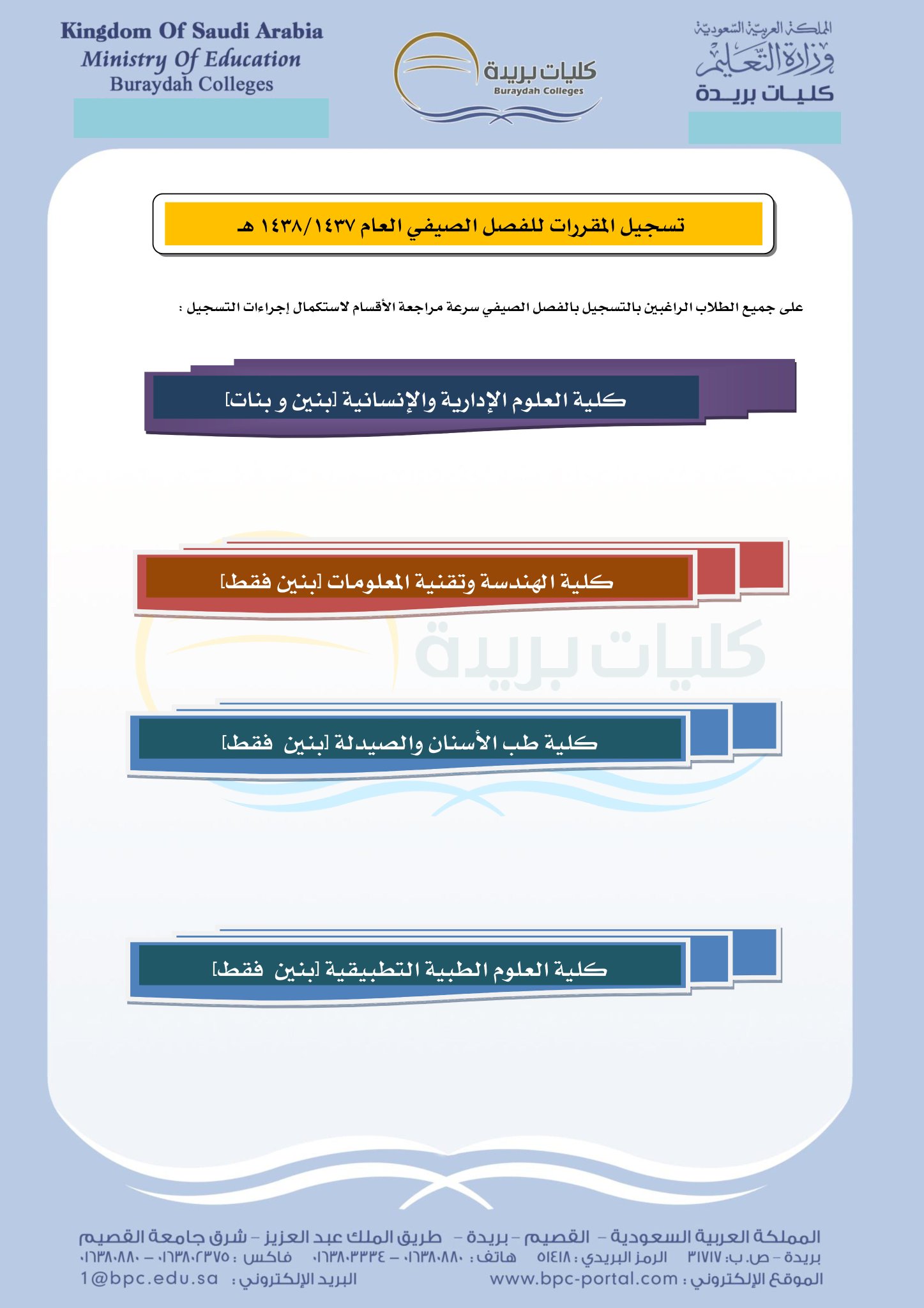 كليات بريدة Sur Twitter قرر مدير عام الكليات أحمد بن عبدالله أبا الخيل البدء بتسجيل المقررات الدراسية للفصل الصيفي العام 1437 1438 هـ