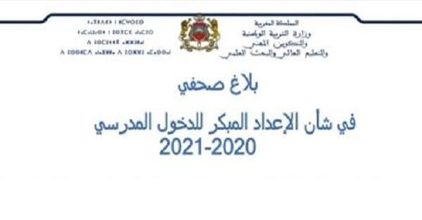 بلاغ صحفي في شأن الإعداد المبكر للدخول المدرسي 2020 2021