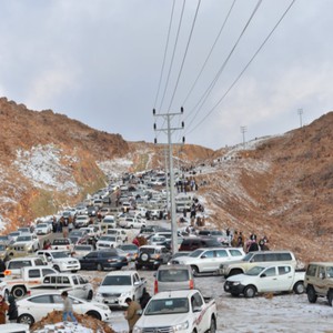 السعوديون يعيشون تجربة تساقط الثلوج في جبل اللوز الشرق الأوسط