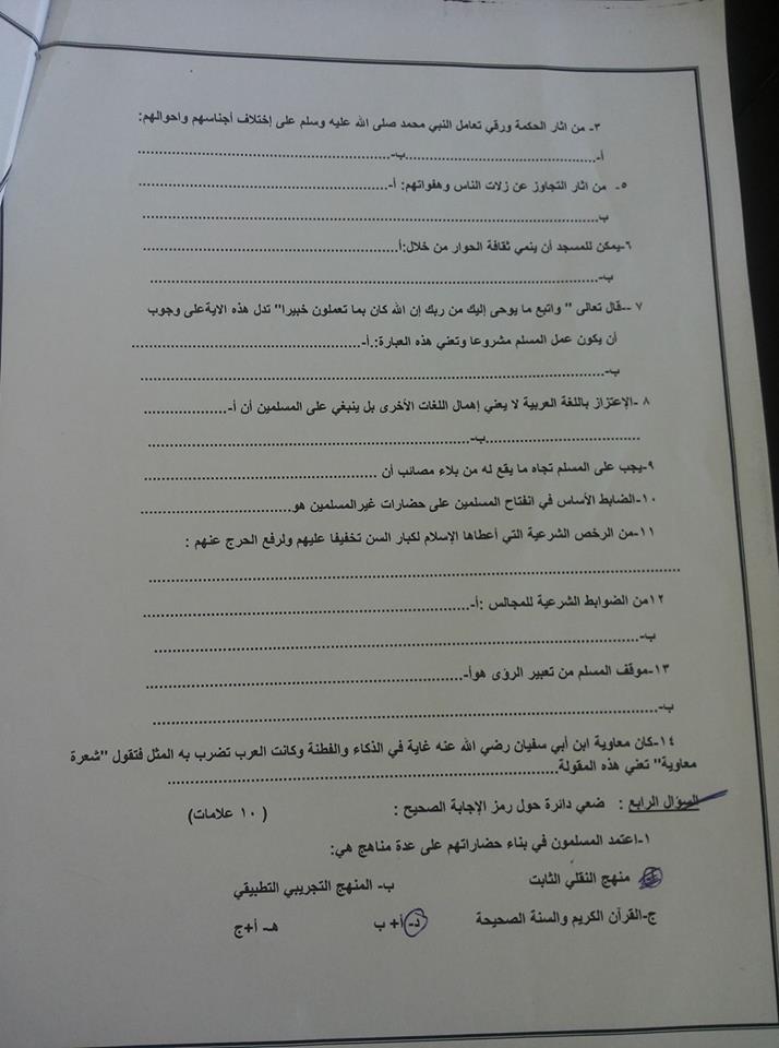 امتحان علوم اسلامية ف2 2018 صيفي موقع مكتبة الاوابين Facebook